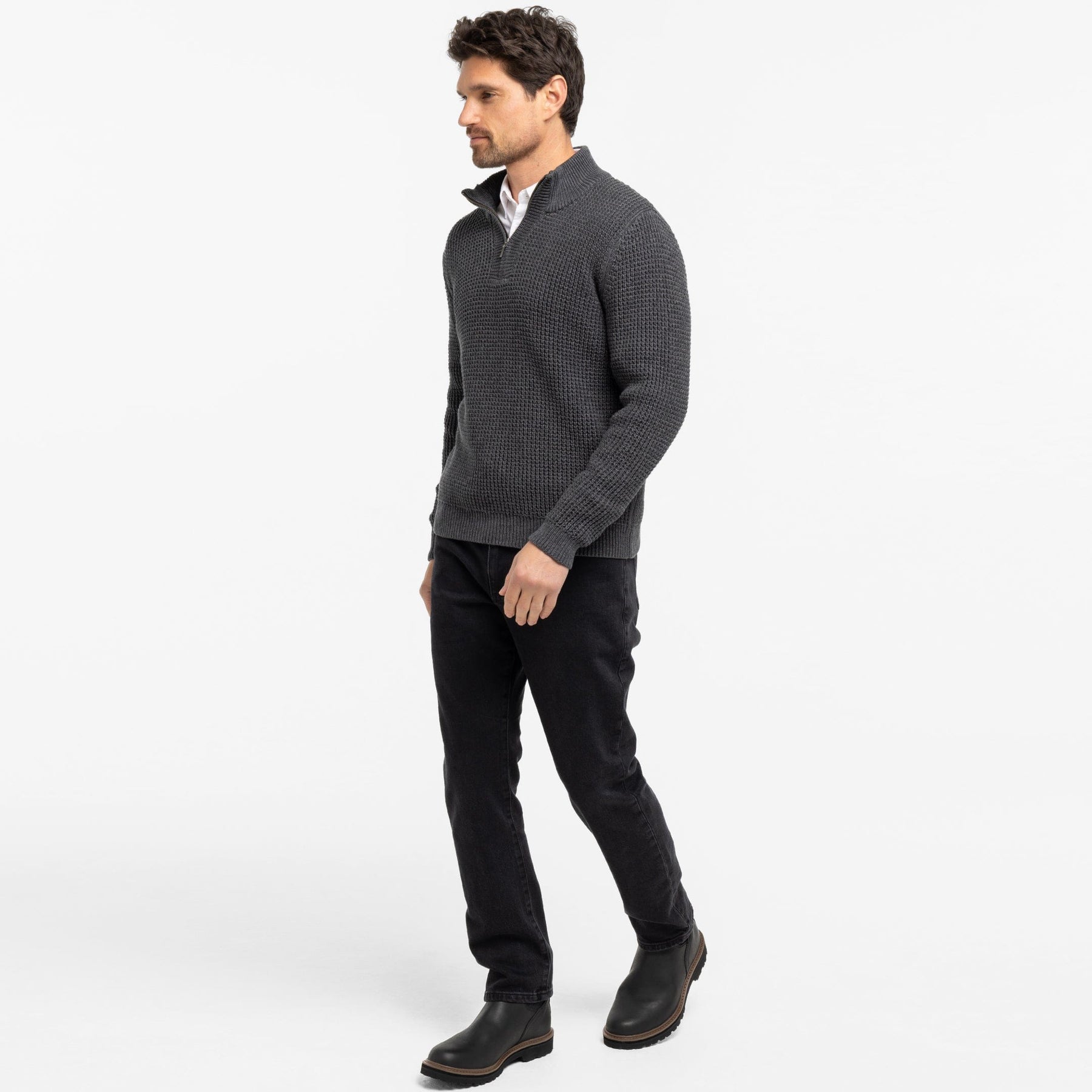 Heather Grey Waffle Knit Quarter-Zip Sweater for Short Men | Ash & Erie   Sweater
