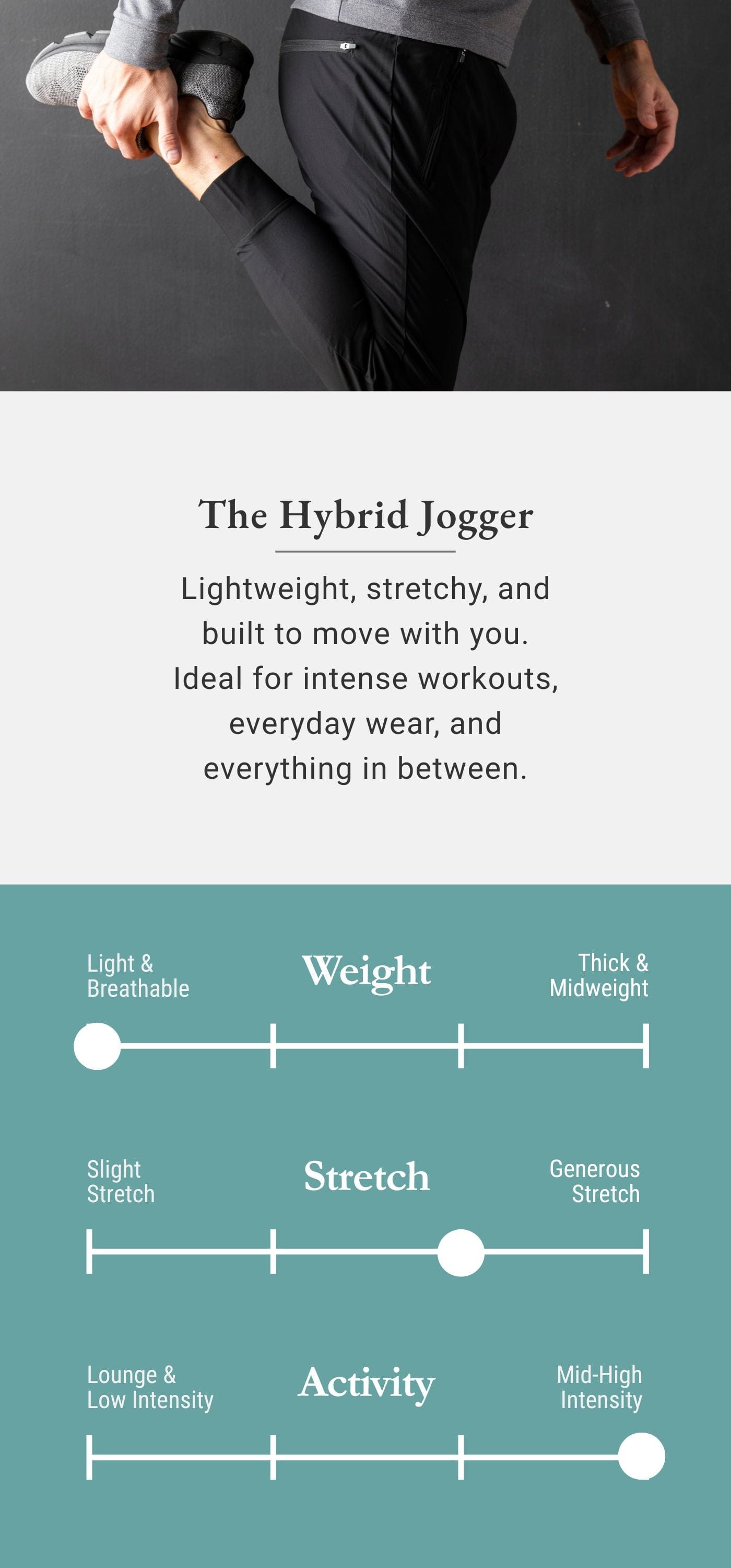 Our new Hybrid Joggers are perfect for the man on the go. They're made for long runs, tough workouts, golfing, hiking, lounging, traveling, and so much more! The perfect versatile bottom that can do it all.