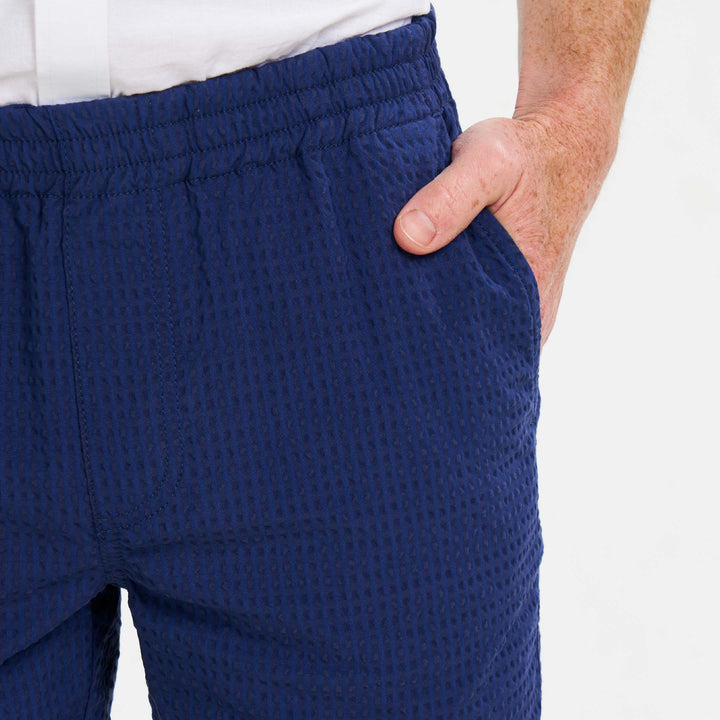 Ash & Erie Blue Seersucker Deck Shorts for Short Men   Walking Shorts